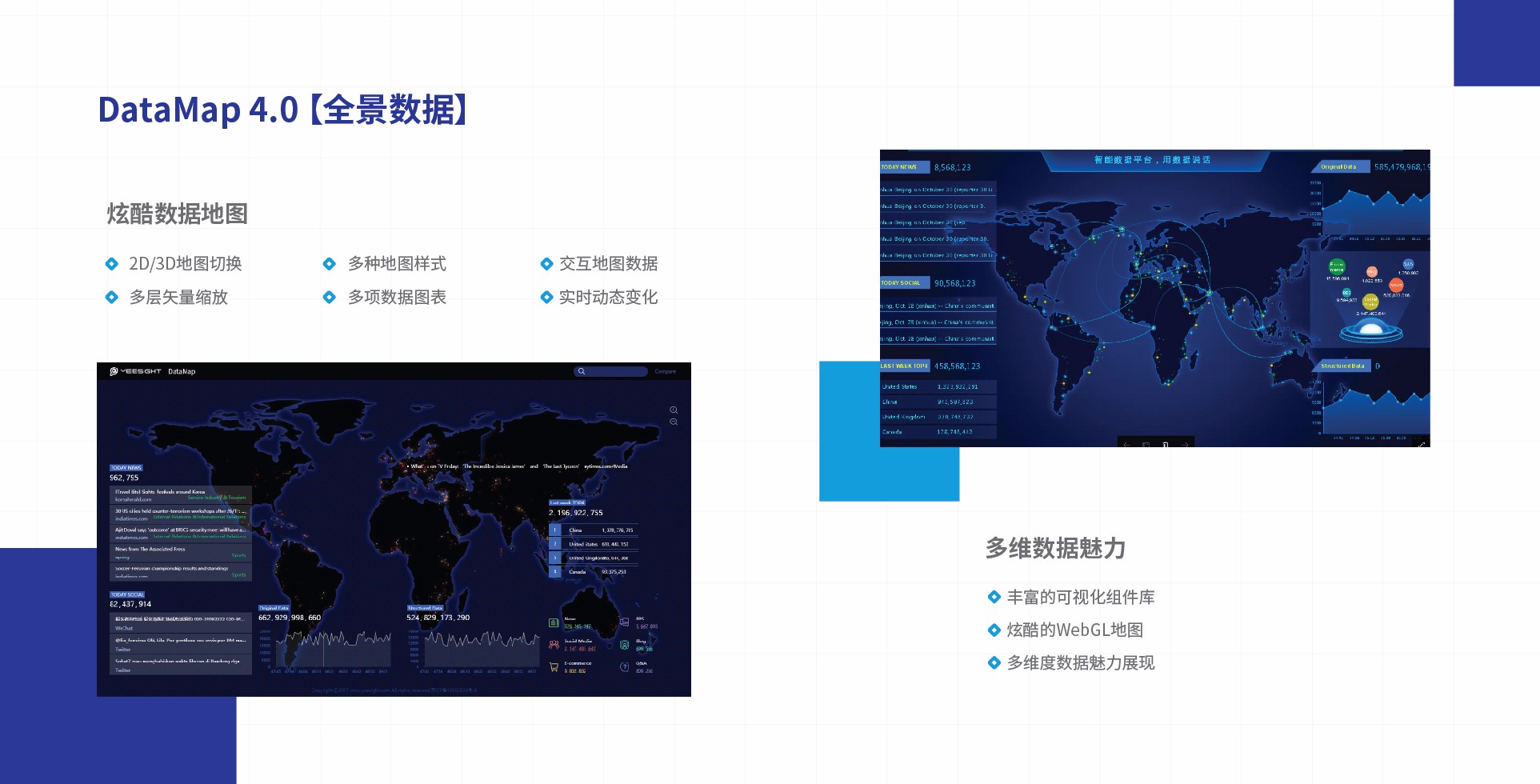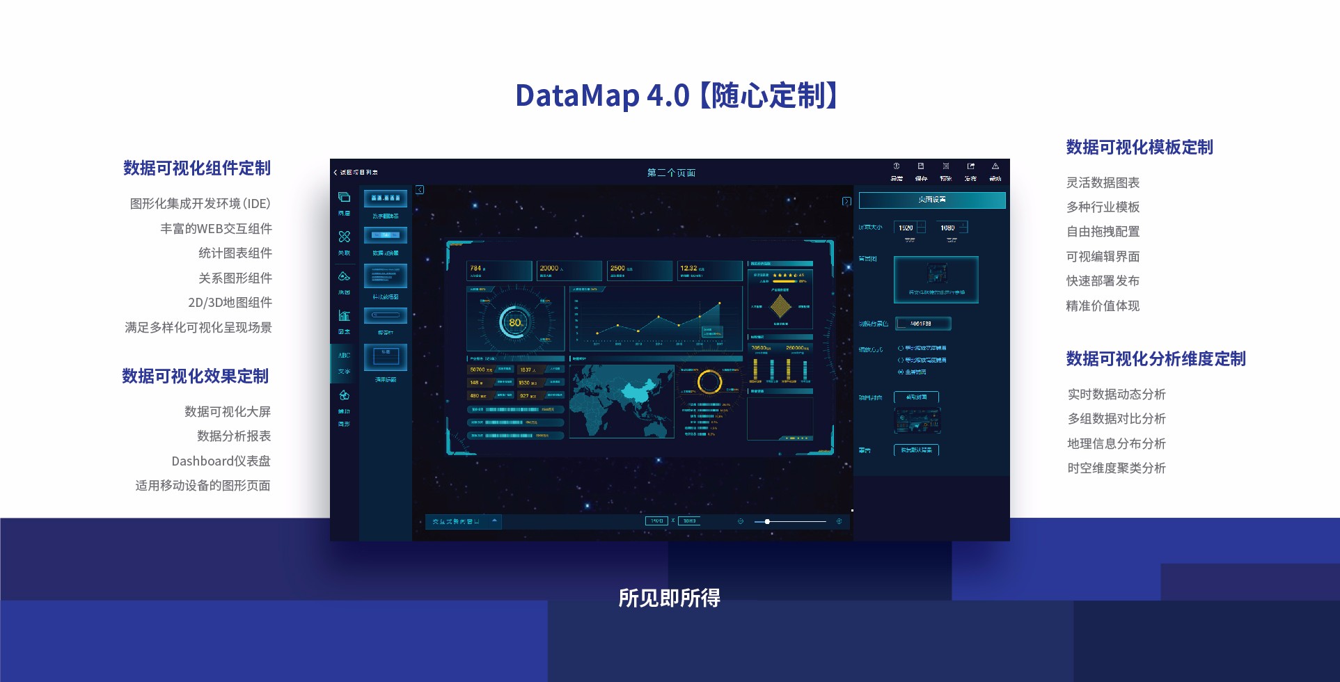 DataMap4.0是中譯語通(GTCOM)自主研發(fā)的一款強(qiáng)大的數(shù)據(jù)可視化開發(fā)工具。它不僅可以定制化分析客戶自有數(shù)據(jù),更可依托中譯語通自有的知識(shí)圖譜、自然語言算法、恐慌預(yù)測(cè)分析等智能算法,實(shí)現(xiàn)對(duì)各種數(shù)據(jù)的深度可視化挖掘分析;還能夠提供便捷、所見即所得的數(shù)據(jù)可視化配置工具,滿足不同行業(yè)客戶在事件監(jiān)測(cè)、業(yè)務(wù)管控、風(fēng)險(xiǎn)預(yù)警、地理信息分析等多領(lǐng)域業(yè)務(wù)的可視化需求。
